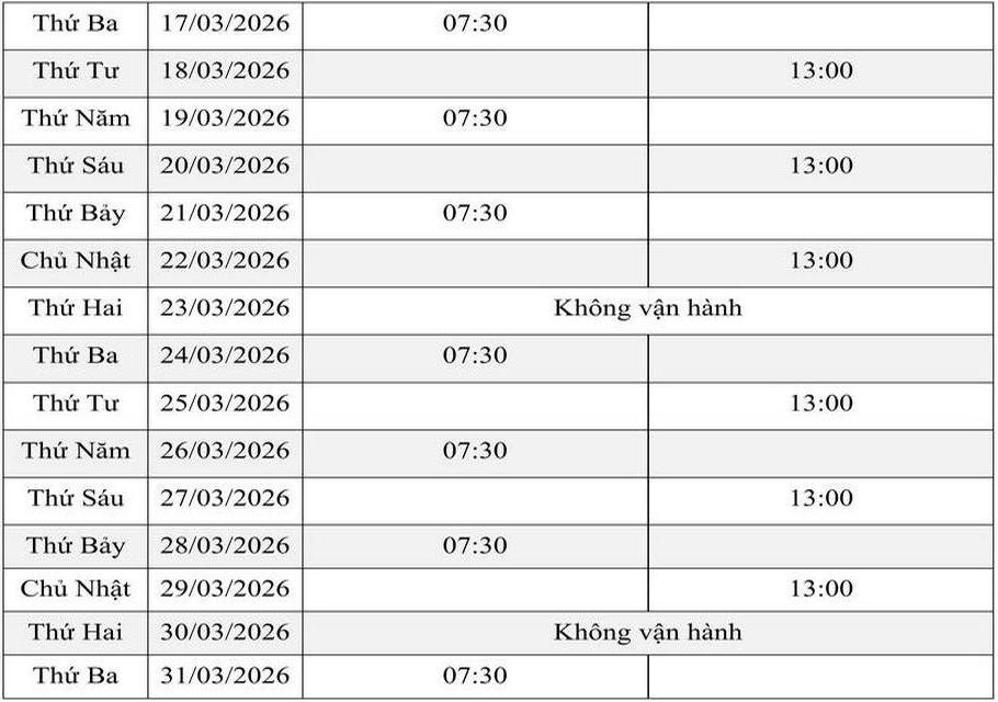 LỊCH VẬN HÀNH THÁNG 2 VÀ 3/2026 - MỖI TUẦN CÓ 3 CHUYẾN ĐI VÀ 3 CHUYẾN VỀ
